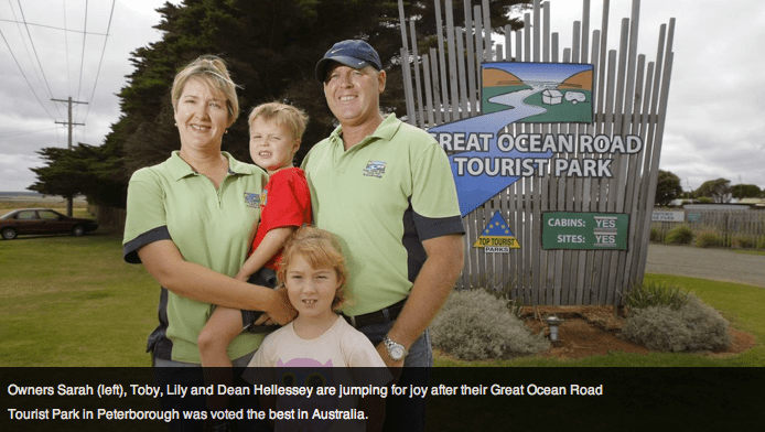 The Great Ocean Road Tourist Park in Peterborough took first place in a national search for Australia’s Best Holiday Park, run by Turu.com.au and Woman’s Day.