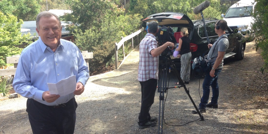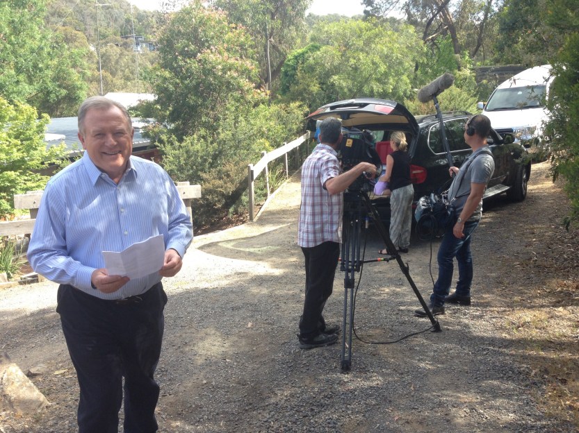Peter Hitchener and the Nine News crew snuck into Warrandyte last month to film a bushfire safety message ahead of summer.